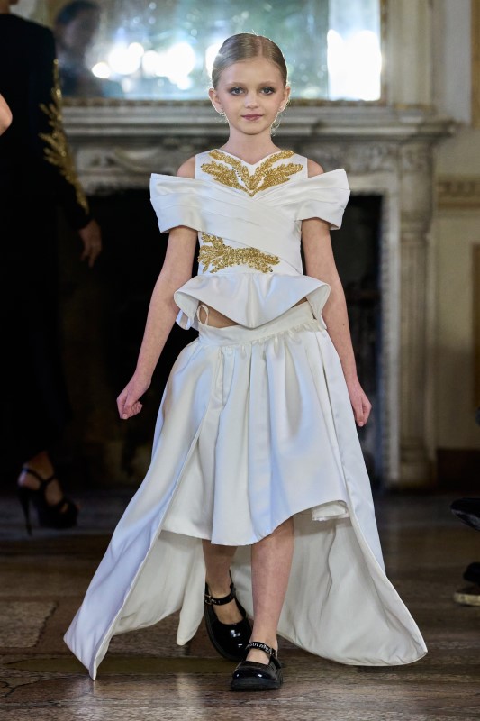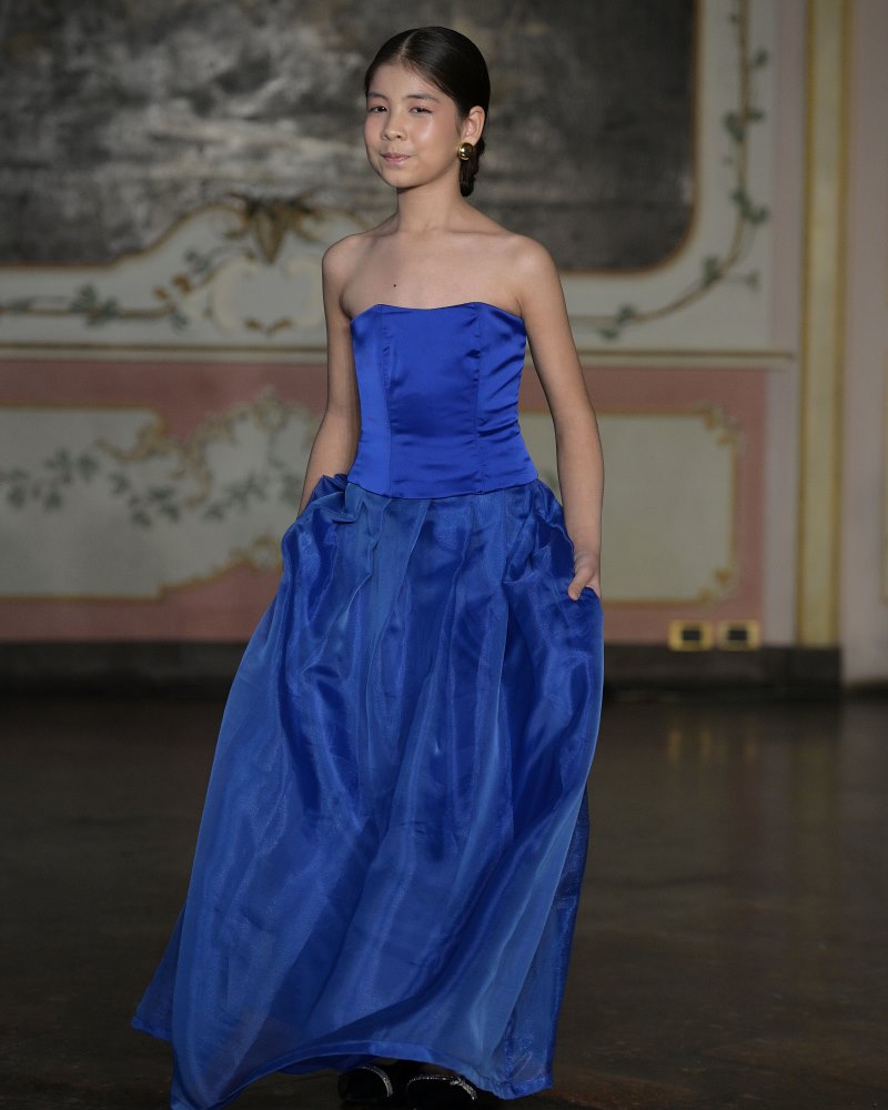 Enhle Babes Couture brought a radiant celebration of African heritage to the runway, presenting a collection that translated royalty into joyful couture for a new generation. Founded in South Africa by prodigious designer Enhle at just ten years old, the brand infused Milan with vibrant colour, rich cultural prints, and a spirit of unapologetic optimism. Silhouettes designed for children and teens carried the confidence of ceremonial dress, where sparkle, texture, and bold patterning became symbols of identity and pride.
