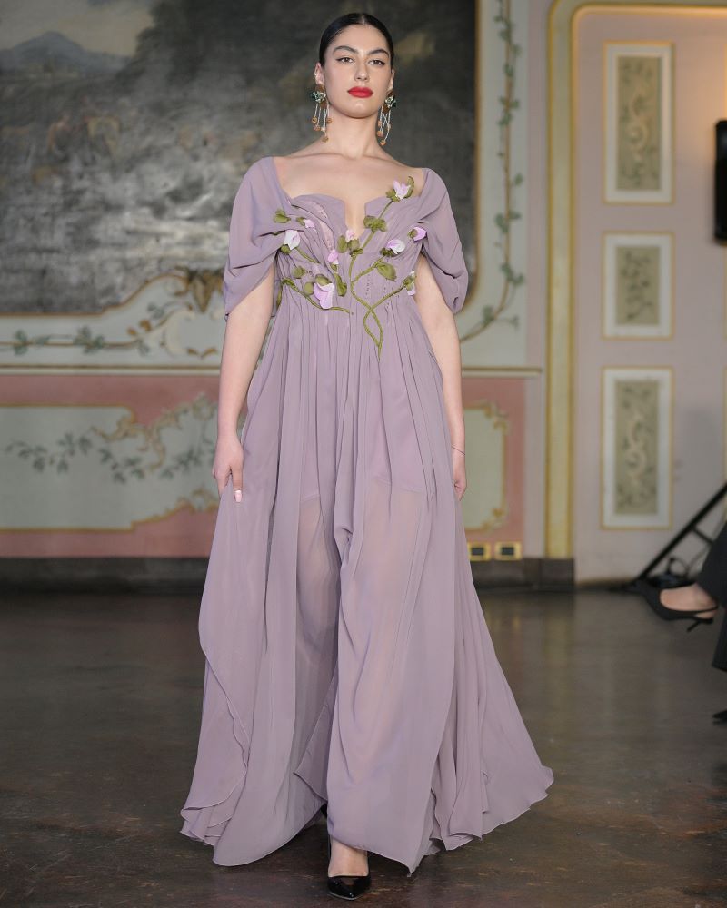 Anton Giulio Grande brought to Milan Fashion Days the authority of Italian haute couture, unveiling a vision where sensuality, artisanal savoir-faire, and a powerful sense of personality define modern elegance. Renowned for his entirely handmade creations developed in traditional ateliers where time replaces machinery, he continues to celebrate a woman whose presence transcends conventional beauty — one remembered for her character and allure.