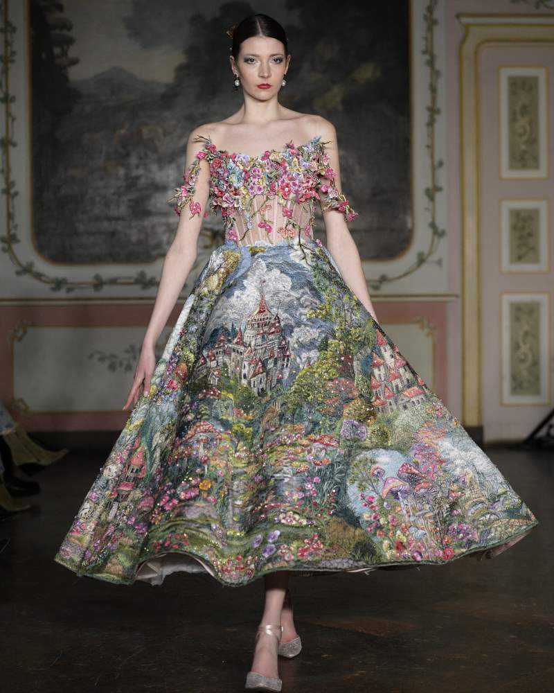 by Vel unveiled a new chapter of its signature line, Secret Garden: Alice Through the Looking Glass, a collection that turned the runway into a dreamscape of memory, reflection, and inner freedom. Founded in Ukraine by two sisters, the brand continues to explore the emotional language of childhood through an unmistakably contemporary lens, where airy, fluid dresses, sculptural volumes, and softly reimagined archival colours moved with weightless grace.