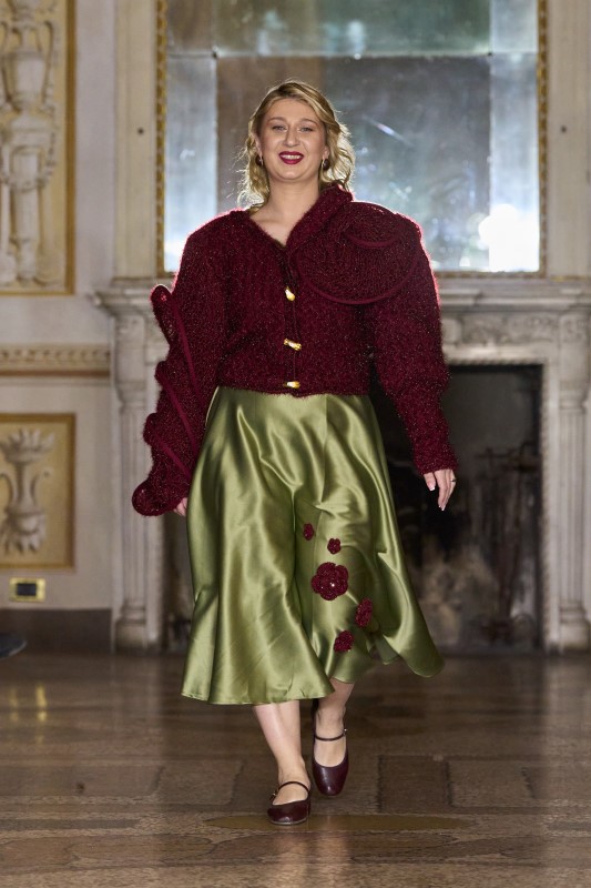 Tinatin Magalashvili presented Color Manifesto, a collection that treated color not as decoration but as a language of identity. One of the most distinctive voices in contemporary Georgian fashion, the designer transformed the runway into an emotional composition where aristocratic references, cultural memory, and modern feminine power converged. Structured silhouettes and fluid layers allowed rich, saturated hues to move like living energy. More than a seasonal proposal, Color Manifesto emerged as a visual philosophy — a statement of individuality, intellect, and the quiet authority of a woman who defines fashion on her own terms.